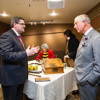 As well as learning more about the early development of Orangeism, the Royal visitor was shown key artefacts from the period of the Glorious Revolution. These included a pair of King William III’s riding gauntlets and a letter penned by the Sovereign prior to his arrival in Ireland in 1690.
